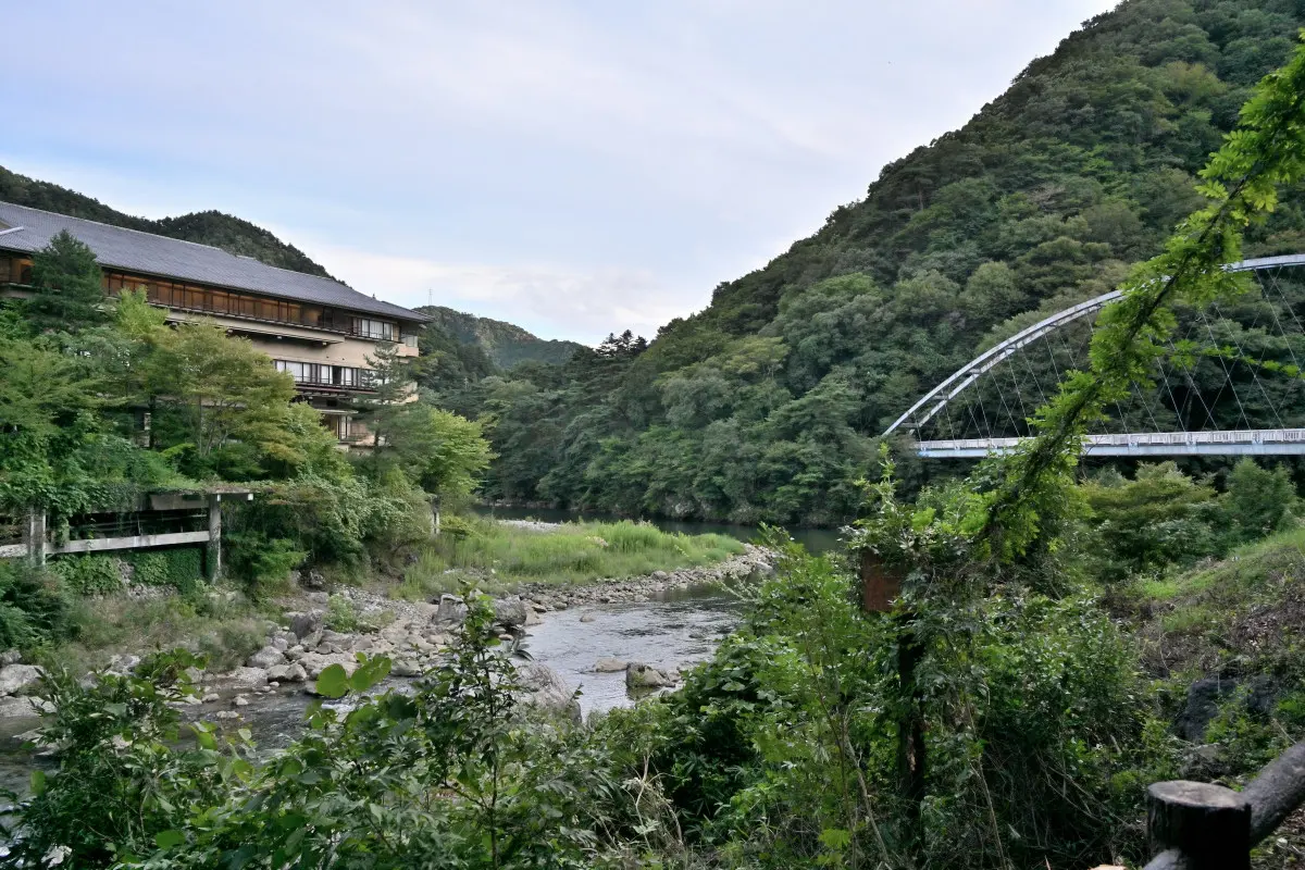 内湯、離れの混浴露天風呂(2箇所)があり、混浴露天風呂は男鹿川沿いにある。