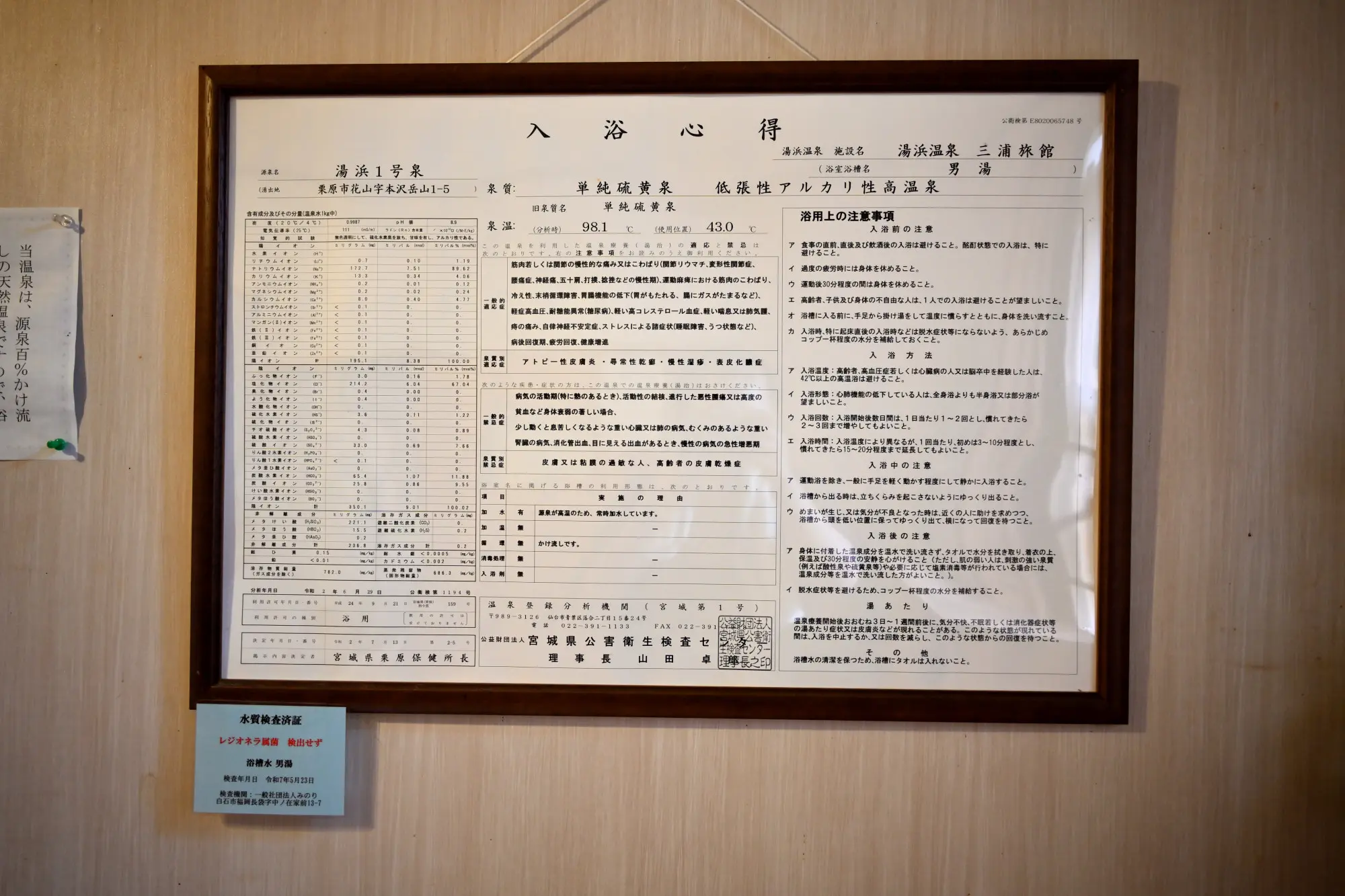 泉温:98.1℃ (通常:ミズナラの湯:44.2℃、男湯:43.0℃)